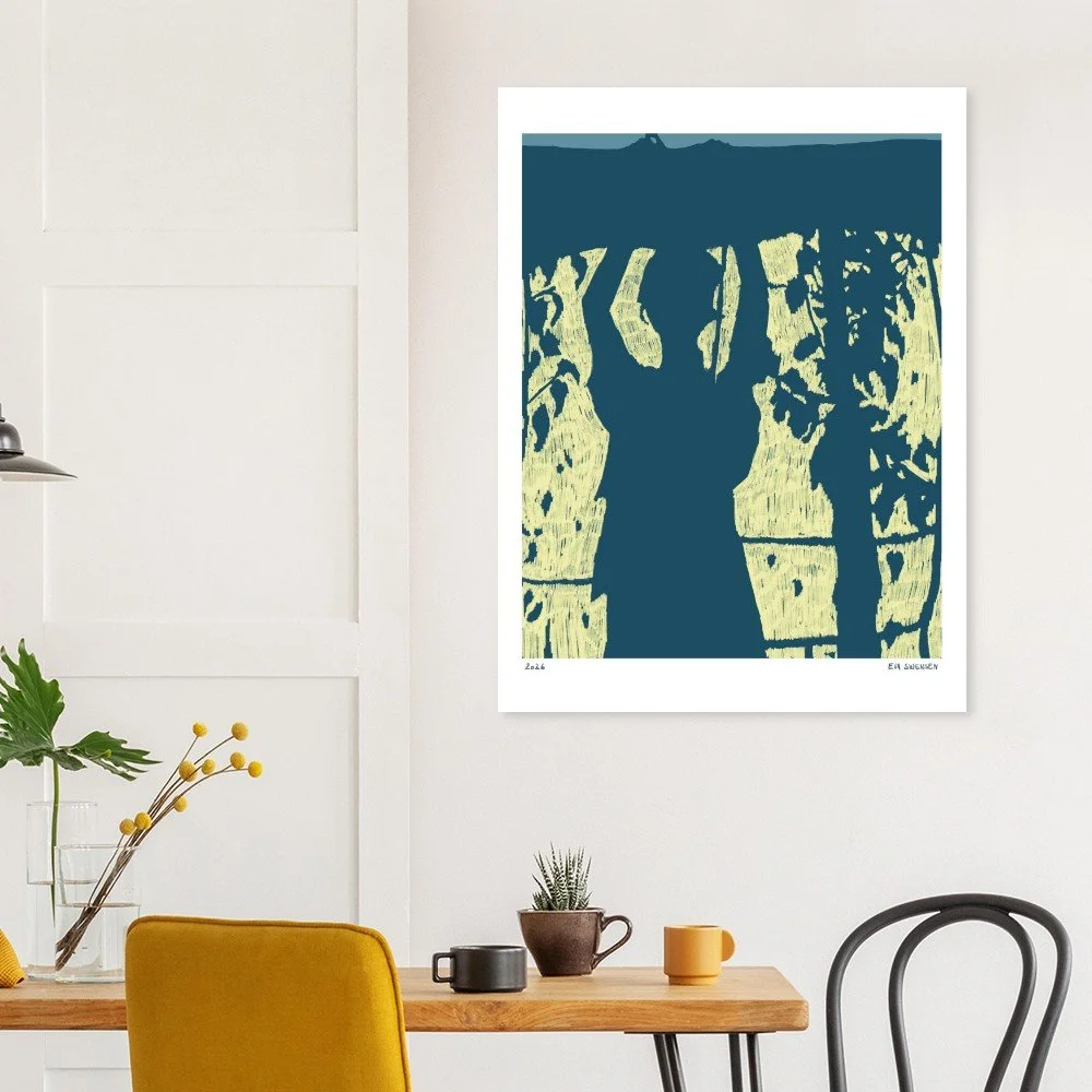 Hva vil “print on demand” si? Jo, det innebærer at din bestilling trykkes etter du legger inn din bestilling. Dermed har jeg ikke et lager liggende med overksuddplakater. Dette hjelper meg å tilpasse produksjonen etter etterspørsel og unngå overforbruk. Jeg bruker tjenesten fra GELATO fordi jeg synes deres trykkerier har levert trykk av høy kvalitet innen rimelig tid.